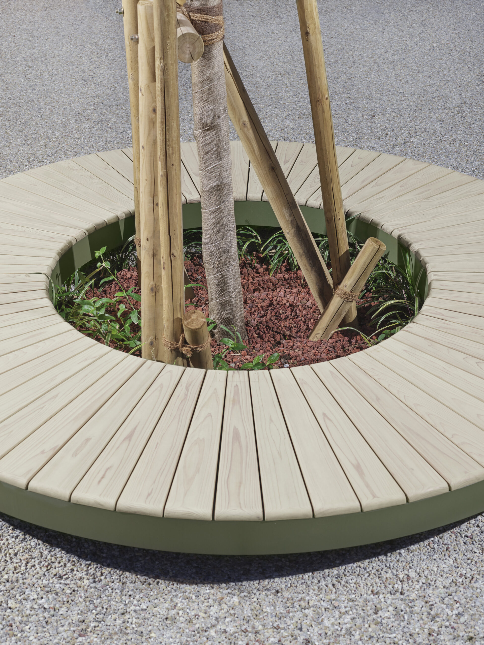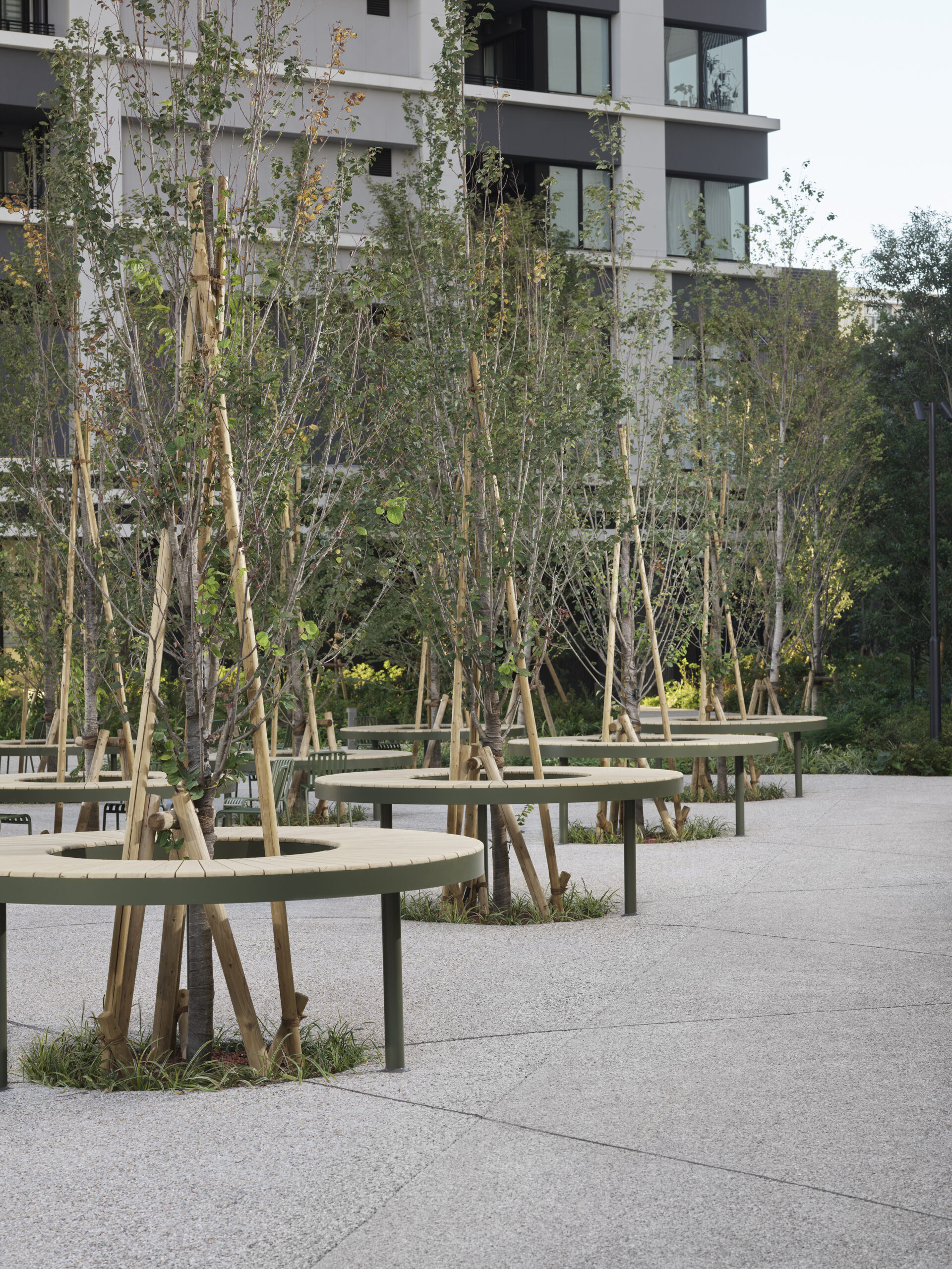 Around them, we placed wide, doughnut-shaped furniture that comes in four heights—23 cm, 38 cm, 72 cm, and 90 cm—gradually changing from row to row along the grid. Benches, tables, ottomans, picnic mats, beds, stages, steps, and play equipment—though uniform in shape, each height lends itself to a different use. We are drawn to parks with depth, where we discover new possibilities the more we engage with them.