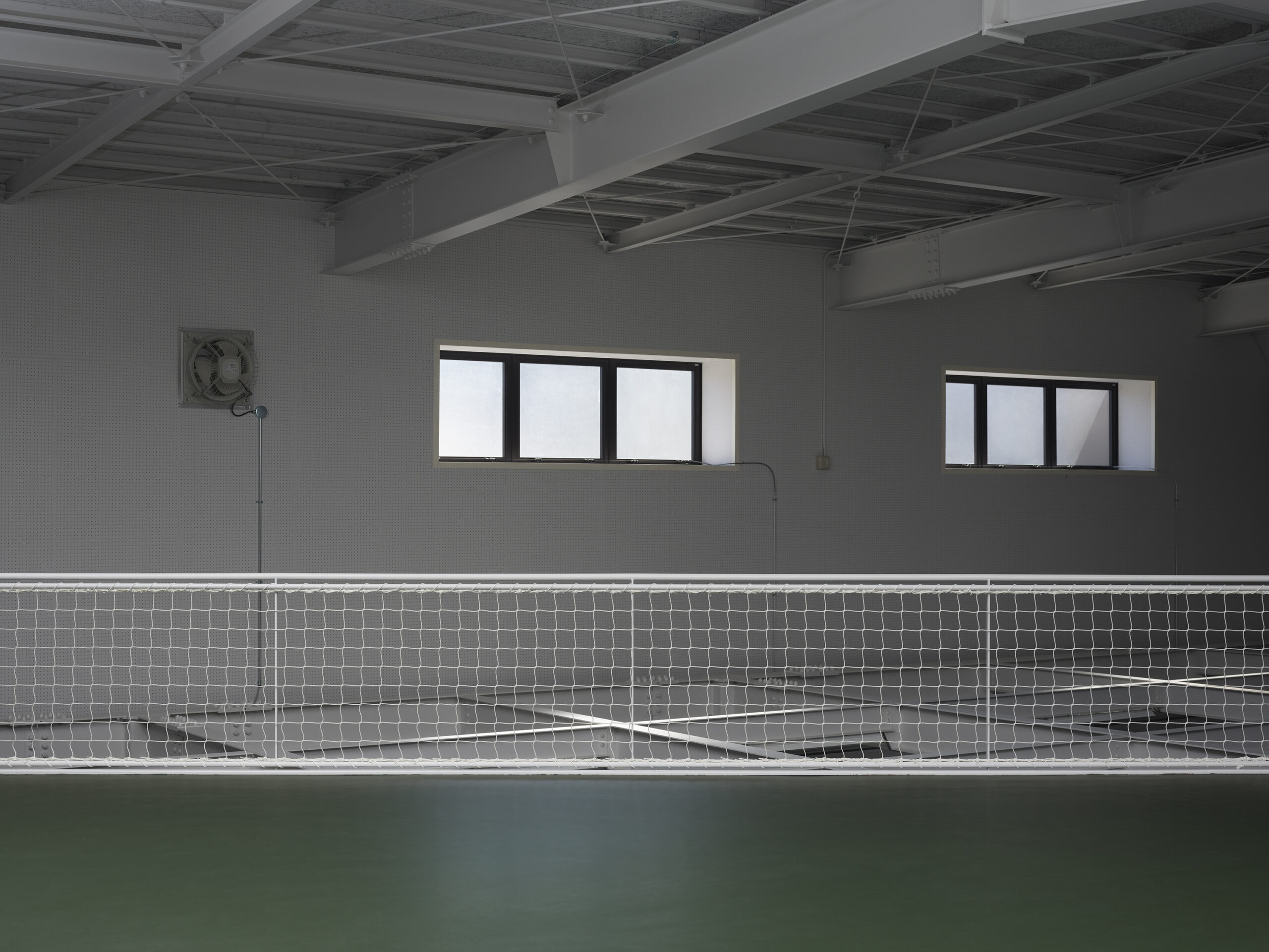 Stepping inside the building for a site survey: the smell, the echo of footsteps, the textures and shadows—all of it unmistakably says “sports hall.” You’d half expect to hear the thud of a bouncing ball from somewhere nearby.