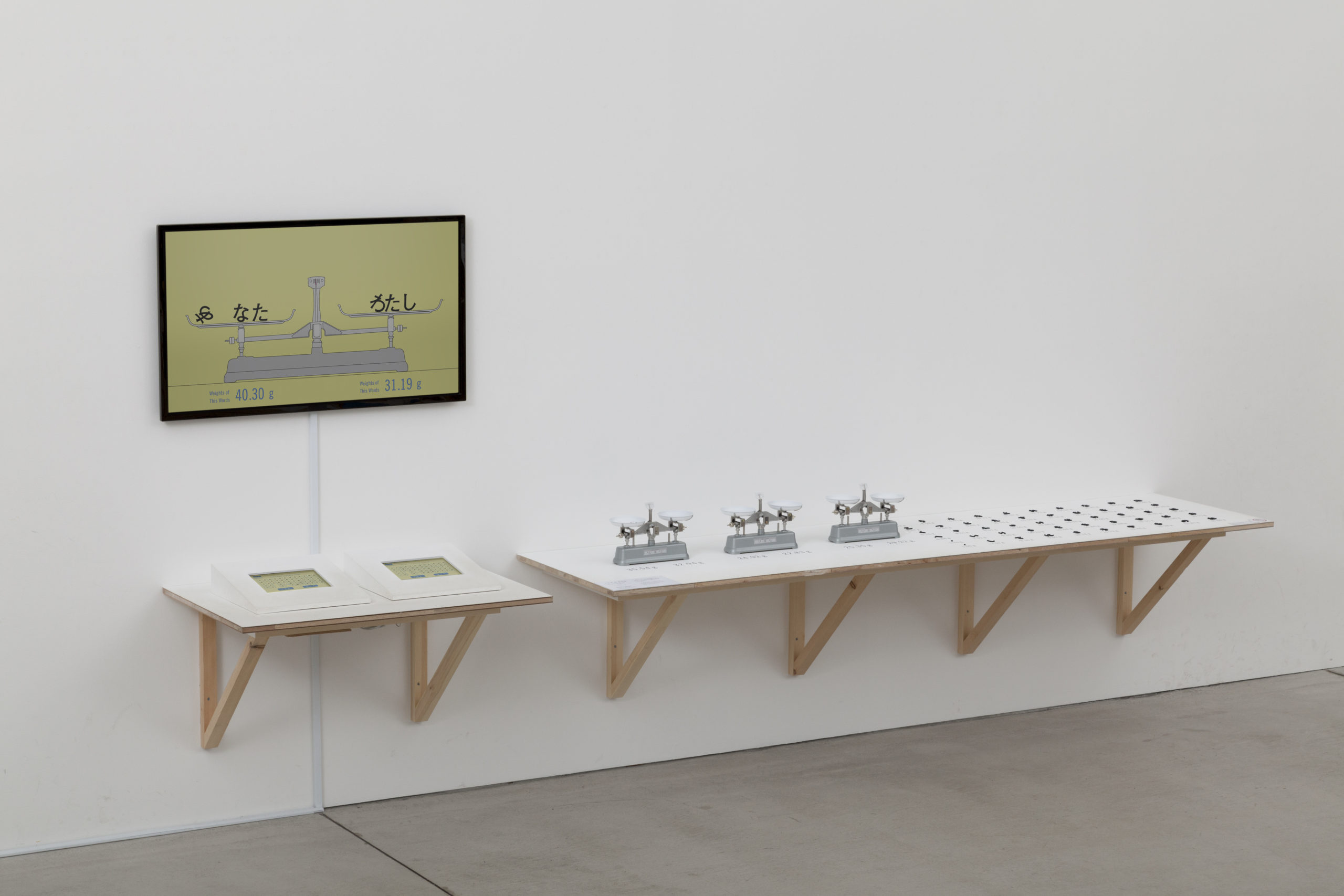 Here we assumed 「゛」, which is the minimum size of the Japanese character, is equal to 1.00 g and calculated each weight from area ratio. On that basis, each character’s weight can be calculated and when words are formed it can each be measured and compared.