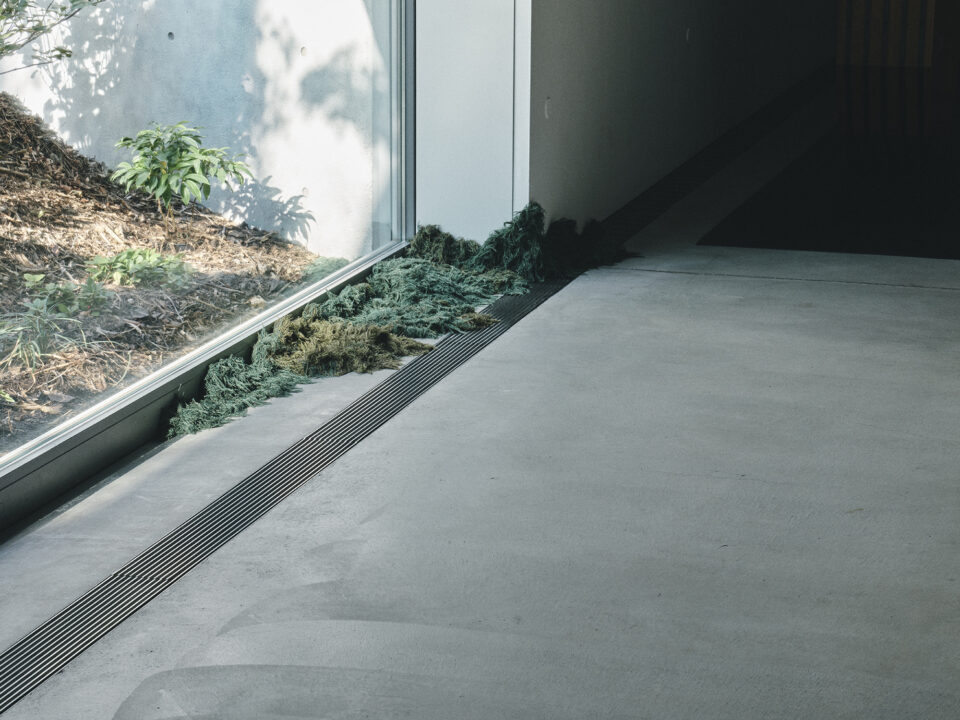 箱馬を積んだだけの台座や、パレットを並べて柔らかい養生布を巻いただけのベンチ。備品のスツールを横に並べただけのデイベッド。施工中の現場でそこら辺に転がっていたものたちを、初めて見たような気持ちで無邪気に組み合わせただけの設えを沢山用意した。リースパネルを含めて、それらは会期が終了したらまた何食わぬ顔をして、元々のそれぞれの持ち場につくだろう。